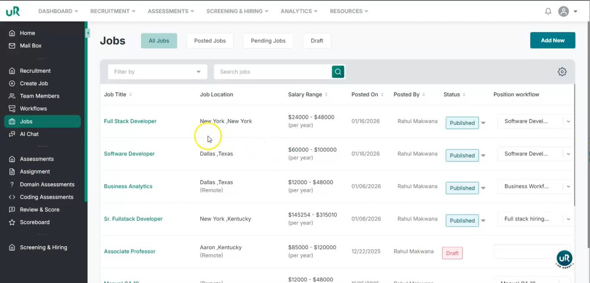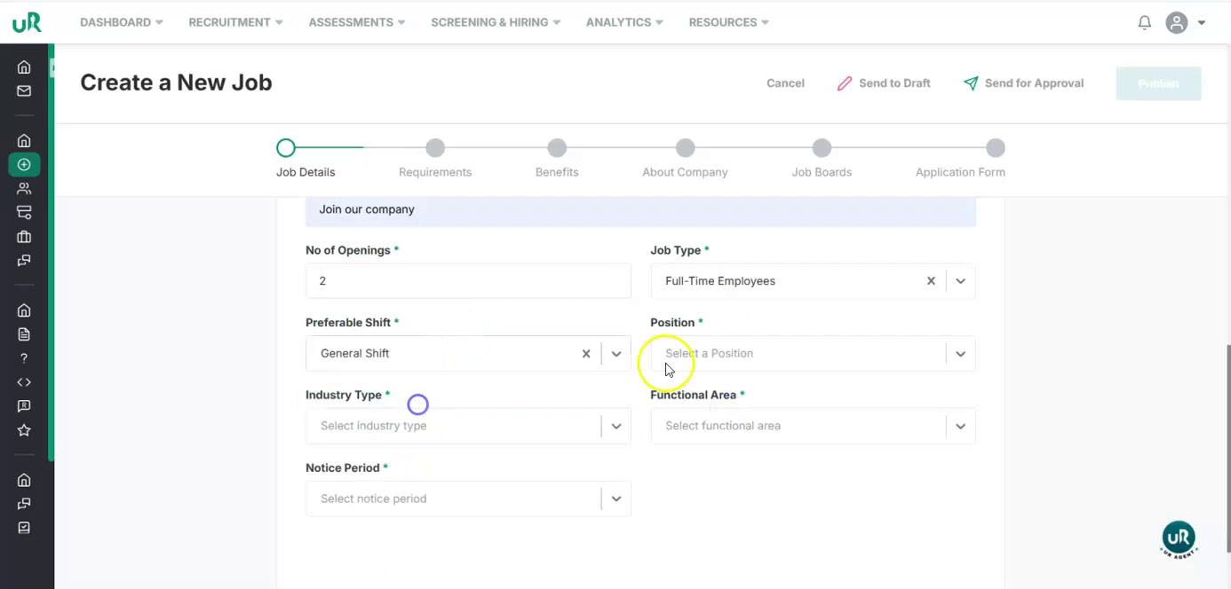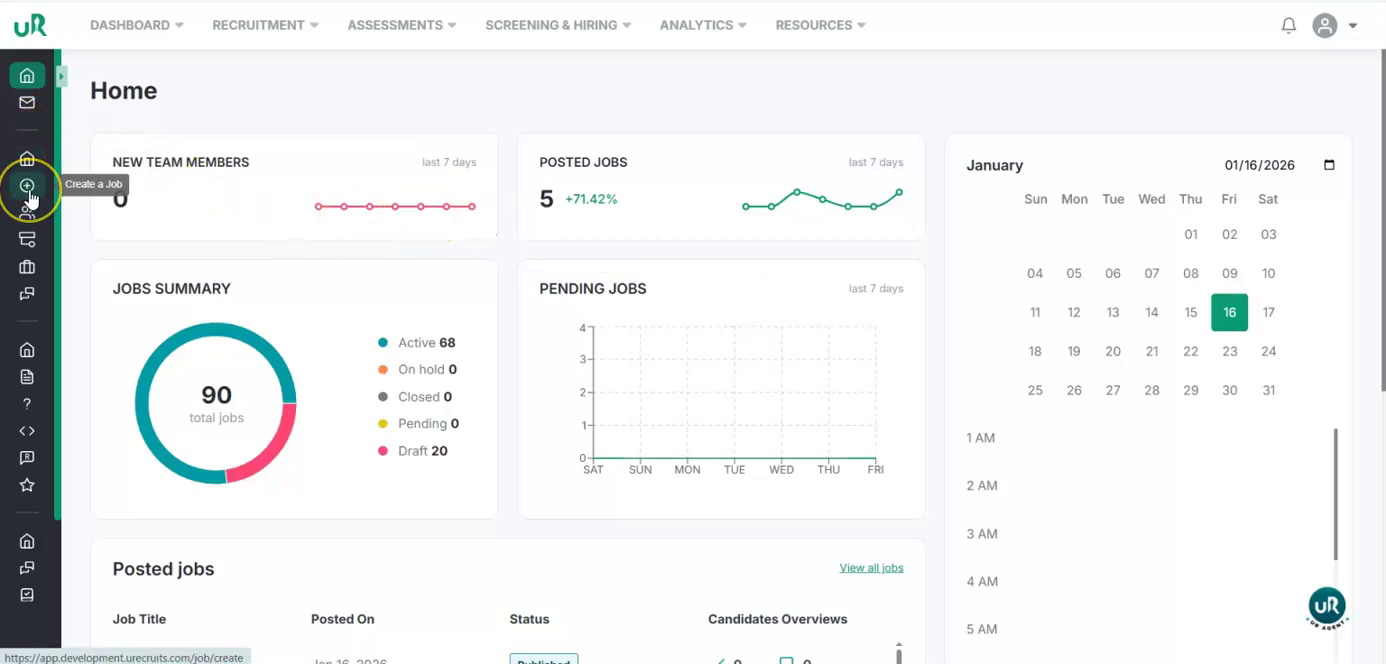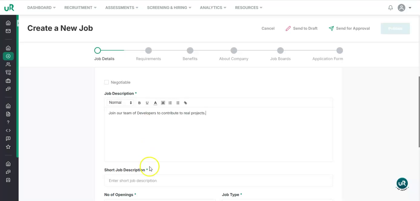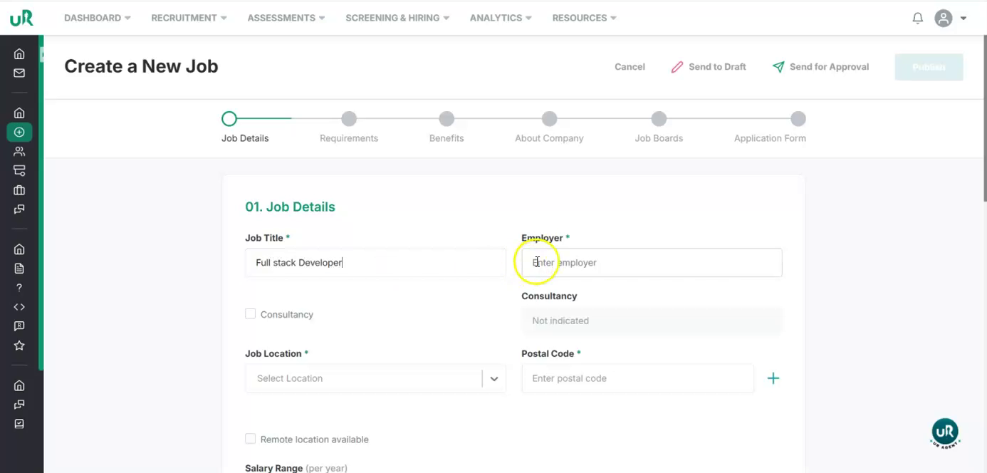 Start Creating a New Job Begin by navigating to the job creation section in the UI and start a new job posting.