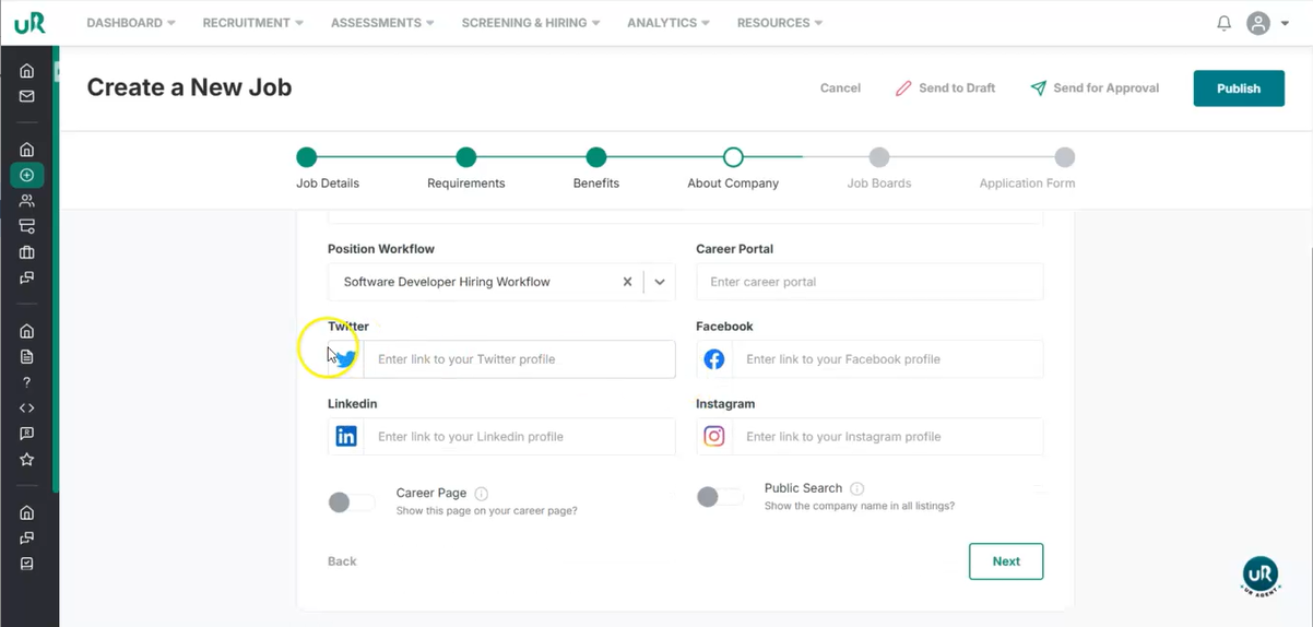 - Add the link to the career portal and other affiliated social media profiles.
