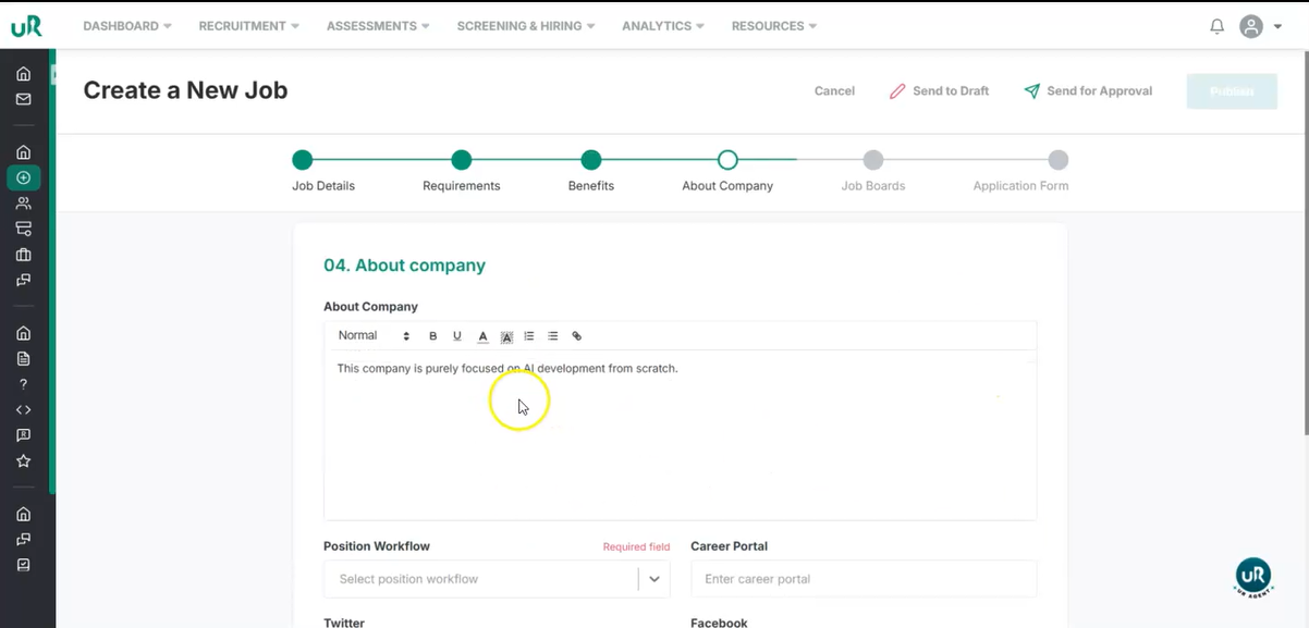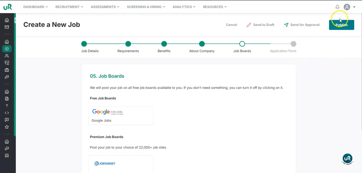 - Urecruits allow you to post a job on multiple job boards.