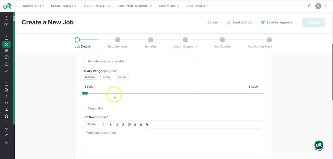 - Choose whether the salary is monthly, yearly, or hourly.