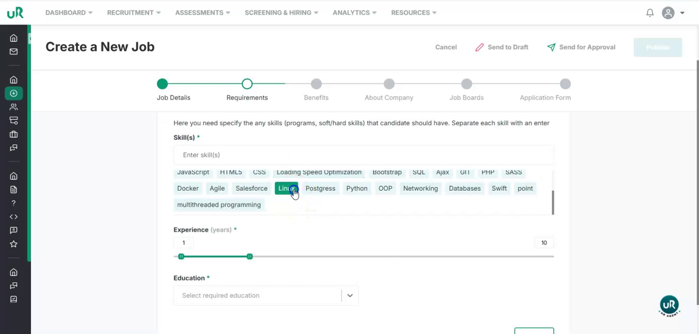 Add Required Skills Proceed to the skills section and define what is needed for this job: