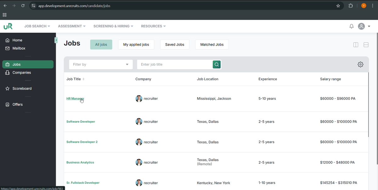 Now, on the recruiters interface, go to the Jobs section. Select the job posted e.g., HR Manager and click on it. You will get the list of the candidates applied.